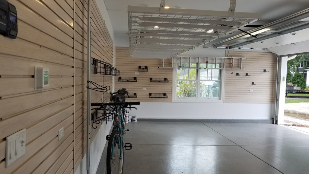 So what’s an affordable, quick, and easy storage solution to get all the stuff you need to store off the floor? Slatwall panels and slatwall accessories! Save space with garage wall storage .